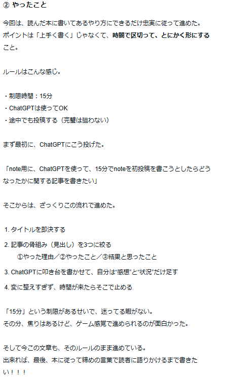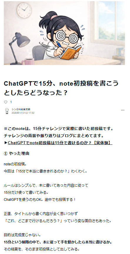 ※以下は、今回の実験で実際に投稿した note の本文です。