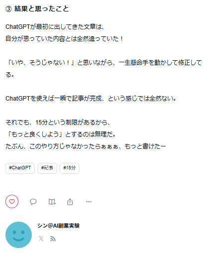 まずは、ChatGPTとnoteを使った15分チャレンジという実験テーマを思いついた背景を、